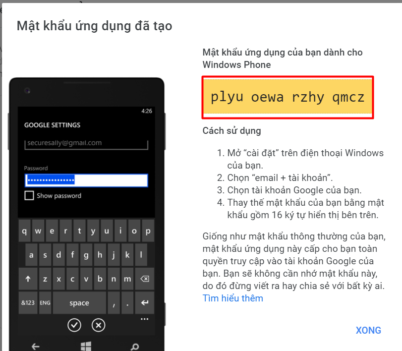Vậy là xong các bước lấy mã ứng dụng SMTP của Gmail, với mã này các bạn thực hiện 1 trong 2 cách dưới sau để có thể gửi mail hay form trong WordPress nhé.